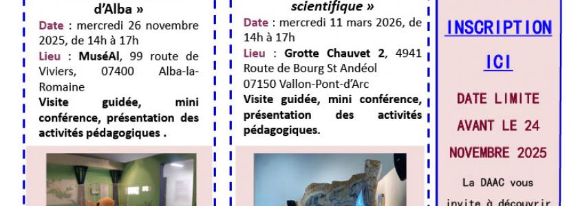 Ces rendez-vous proposés par la DAAC sont réservés aux enseignants de l'académie de Grenoble et leurs permettent d'enrichir leurs connaissances sur les sites patrimoniaux à proximité de leurs établissements.