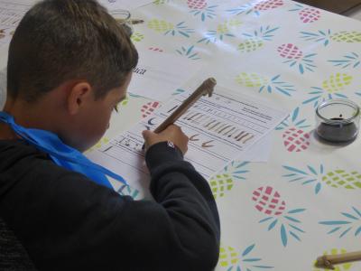 Écrire avec un calame, enluminer une lettrine : l'écriture gothique n'aura plus de secrets pour les élèves.